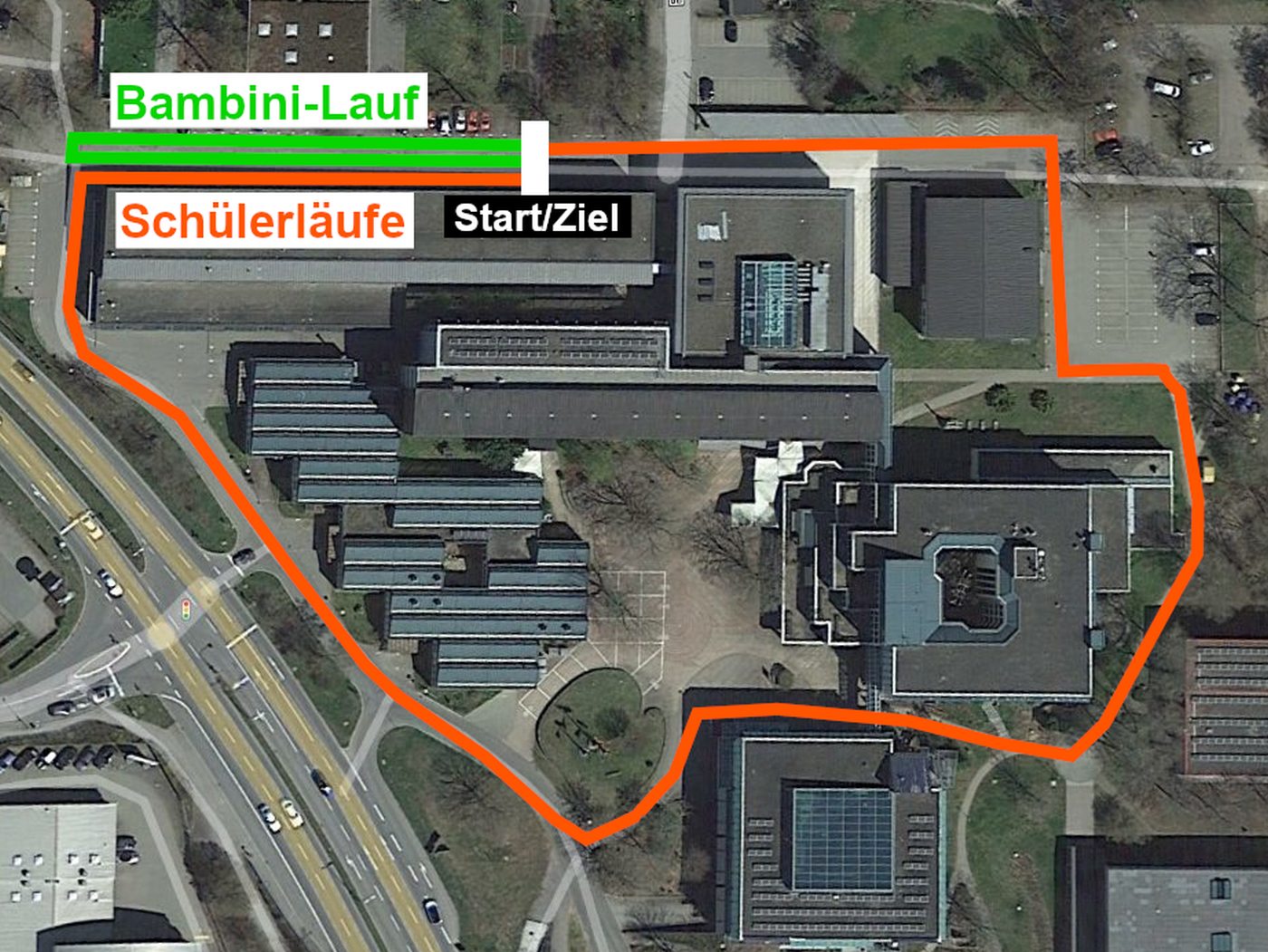 Die Wettbewerbe der Schüler sind je nach Altersklasse 500 oder 1000 Meter lang. Die Strecke führt um die Fritz-Erler-Schule. Eine Runde ist 500 Meter lang und muss von den älteren Schülern 2x absolviert werden (1000 Meter). Start und Ziel ist an der Ferdinand-von-Steinbeis-Schule.
